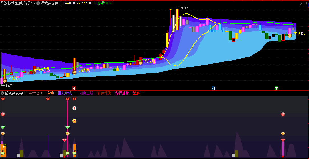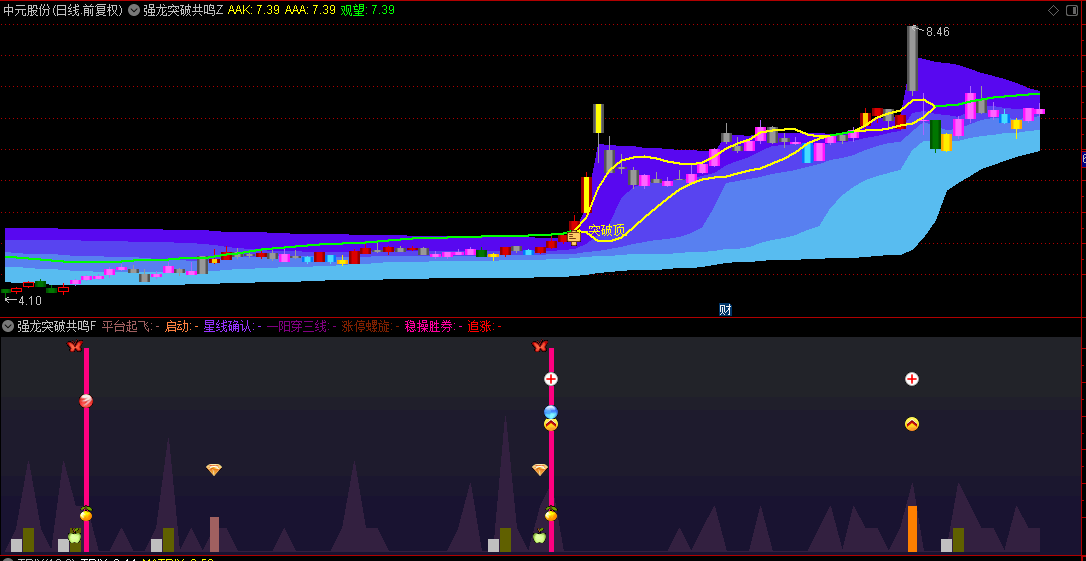 分享一个个人私藏的精品指标——【强龙突破共鸣】指标,主图+副图共振,助你发现强势龙头股。