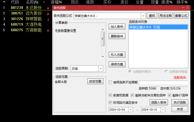 自用精品【突破左峰大牛】副图+选股指标,脚踩黄金梯,即将突破左峰!