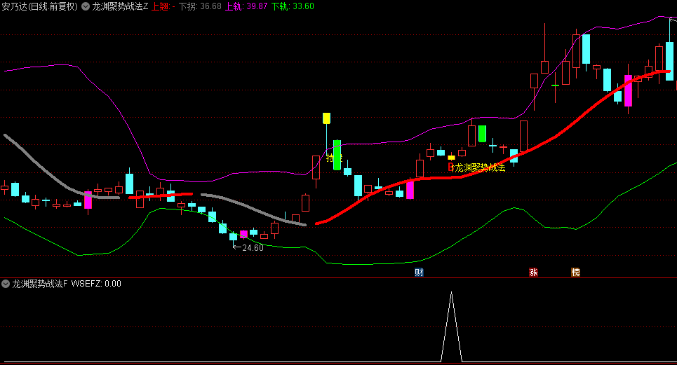 龙渊聚势战法,听起来就充满了神秘与力量。想象一下,布林线如同深邃的龙渊,其上下轨限制着股价的波动范围。当股价触及布林线上轨时,就像蛟龙在渊中积聚了足够的力量,准备一飞冲天,展现出强大的上攻势能。而EXPMA均线,则像是龙渊中蕴含的灵气脉络,其交叉信号为股价的走势注入了灵动的指引。最后,均线多头排列则如同一股强大且稳定的势力,在背后支撑着股价的上涨,仿佛是托起蛟龙翱翔天际的力量源泉。三者相互呼应、协同作用,共同预示着股价将展开一段凌厉的上涨行情。