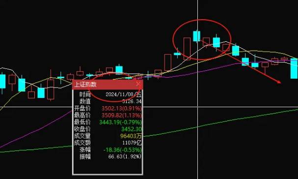 11月8号这一天是反弹的高点,随后快速下跌,这是上证的,其他指数也基本上是这几天前后见顶;