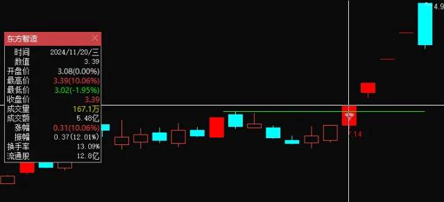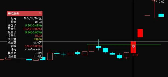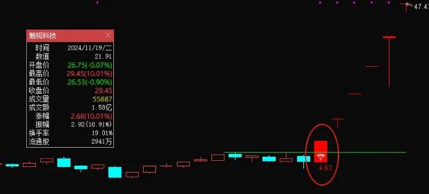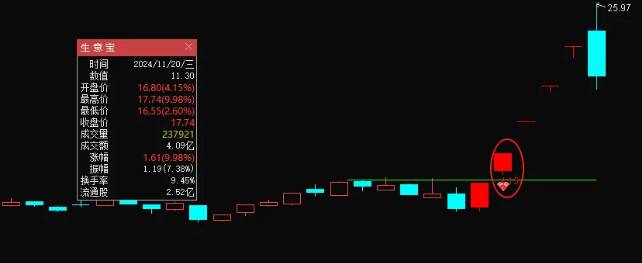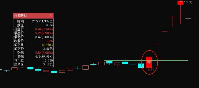 盘中突破的时候,涨幅只有4.63%,当天涨停,后面连板走妖;
