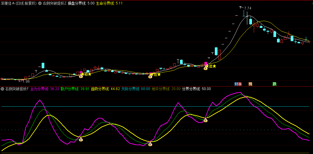 【右侧突破捉妖】主图+副图选股指标,右侧交易战法,波段跟庄突破捉妖!
