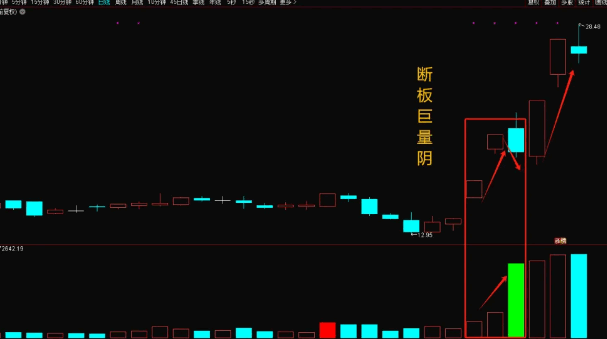 巨量阴线:断板当天伴随的成交量巨大,且阴线与两连板之间的时间间隔最多不超过一天,这通常是市场情绪剧烈波动的体现。