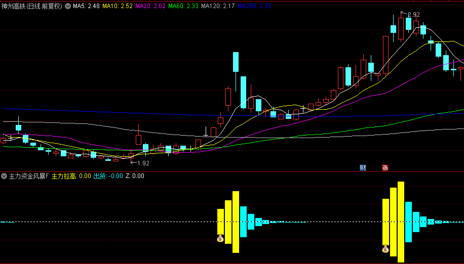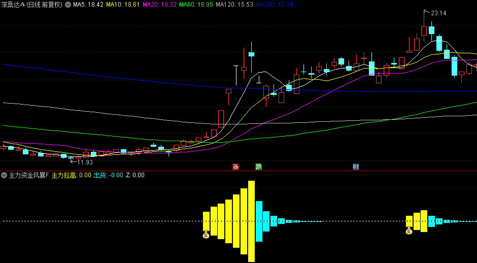 通达信【主力资金风暴】副图+选股指标,图形化主力拉升,根据主力吸筹强度入场!