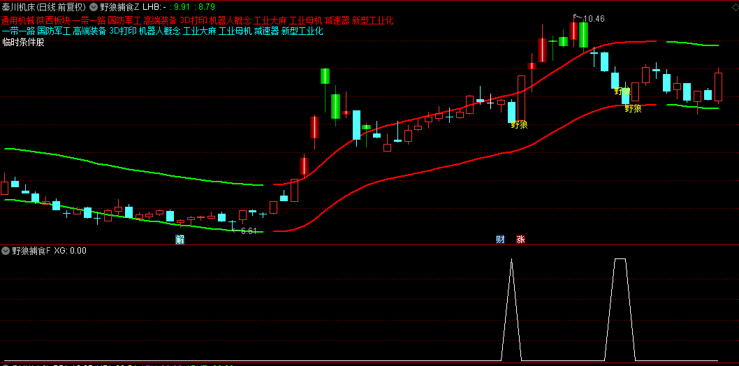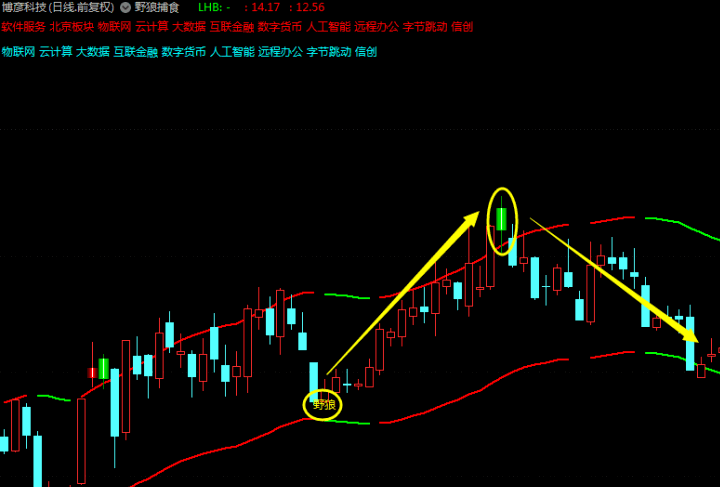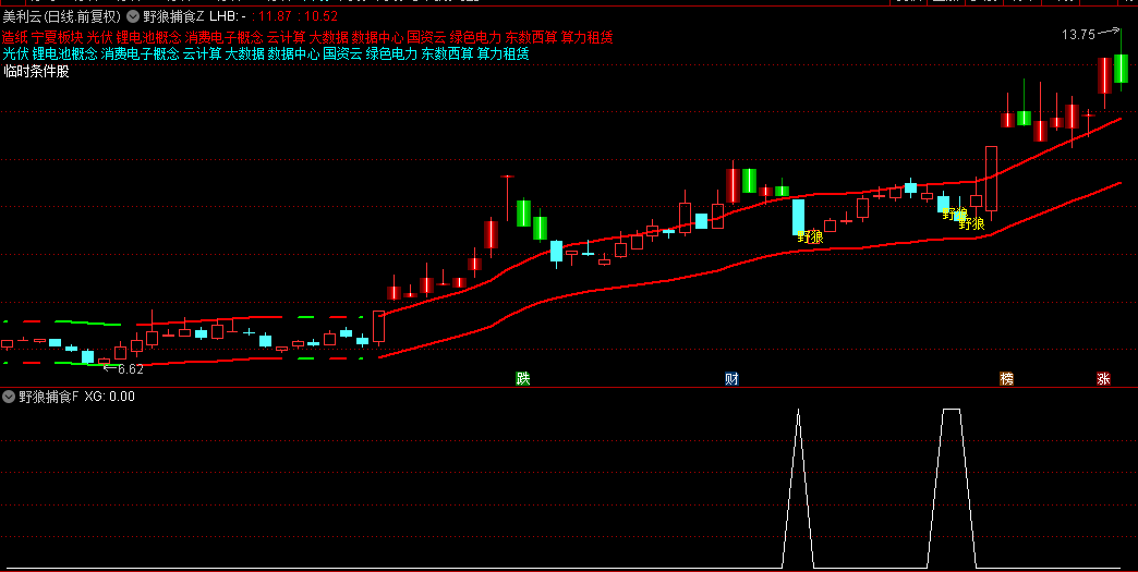 3、当出现“野狼”提示时,为买入信号。这种信号大多出现在上升趋势中,但也可能在下降趋势中出现。然而,在下降趋势中出现的“野狼”提示,并不意味着我们应该立即参与交易,反而应该谨慎操作。