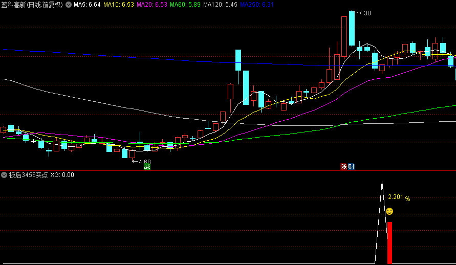 2、涨停板后回调连续3.4.5.6根阴线后,在收阳线当天尾盘为第一买入点。测试成功率高,就算在不会操作一年三到五倍还是有的。