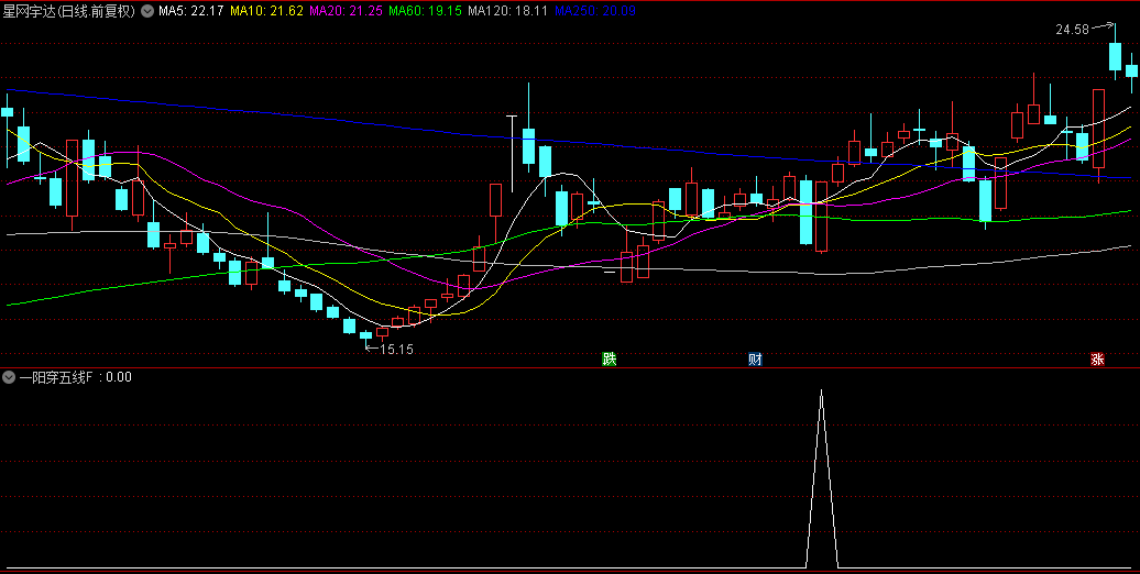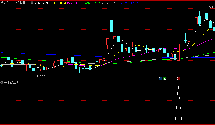 当个股股价在底部横盘震荡了很长时间,某一日收盘价上穿5日、10日、20日、30日、60日等均线并收大阳线时,可以看作个股中线启动信号,无未来。