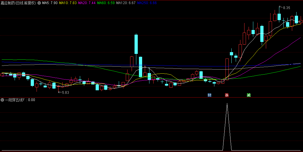 如果出现一阳穿五线强势涨停走势,这是主力想尽快脱离成本区,并得到了长短主力一致认可的结果,后市涨升空间会更大。