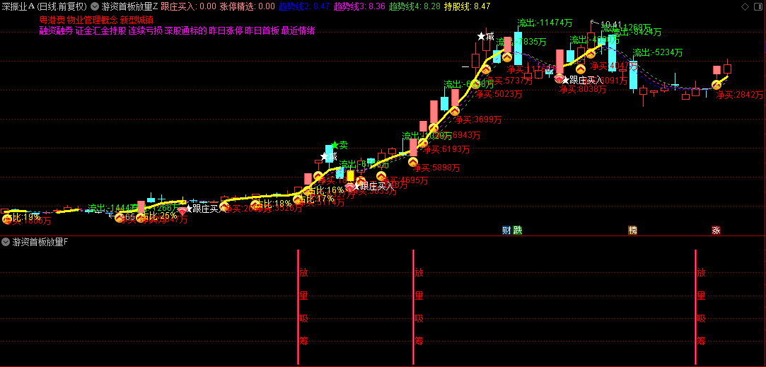 主图净买入额,副图放量吸筹共振是确定性的买点。