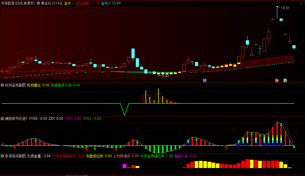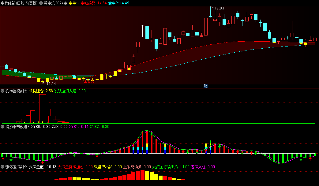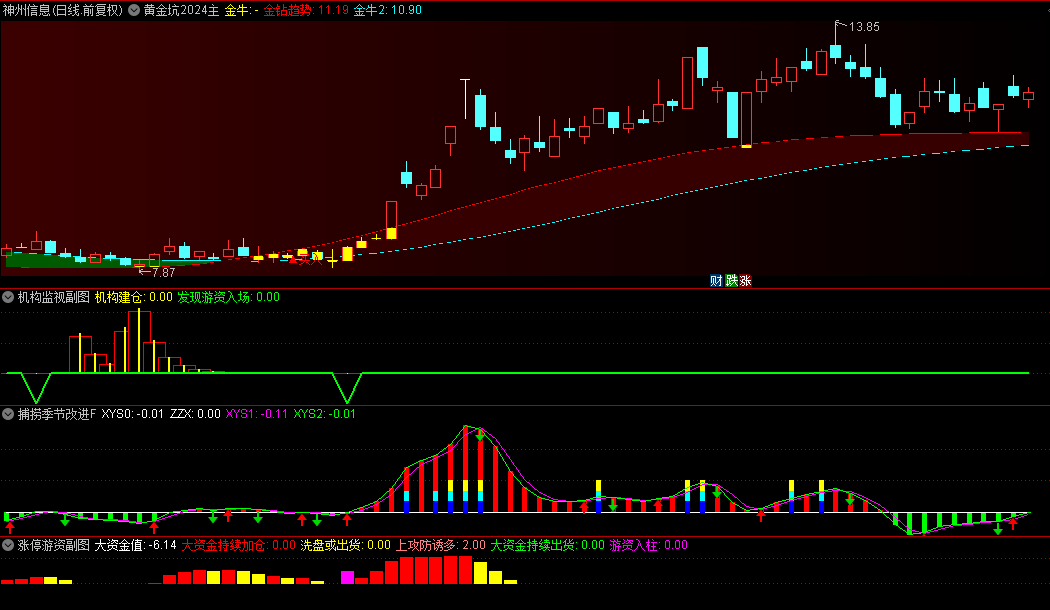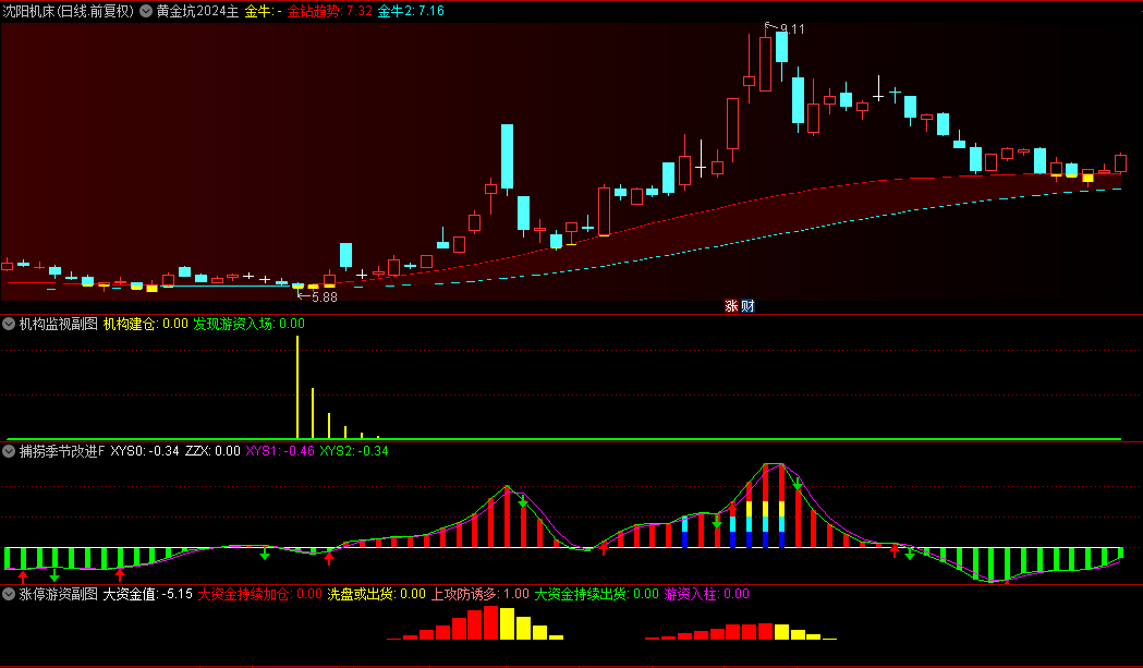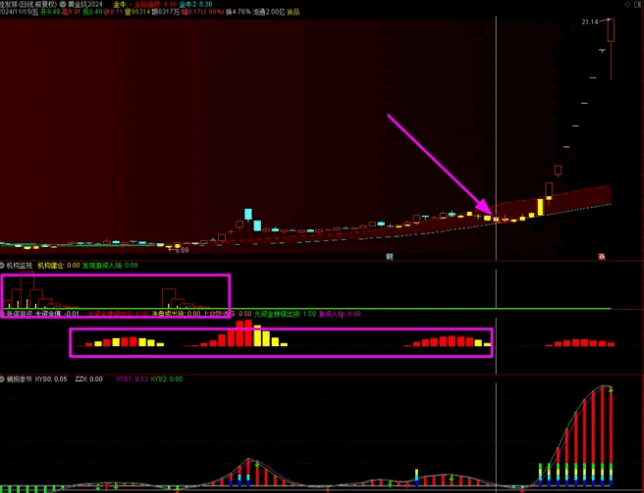 低风险跟庄实战系列之No. 2【跟庄4合1】主图+副图指标,超级简单,黄金坑主图指标出买入信号即入场!
