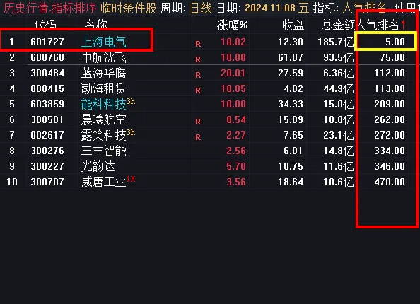 比如上面的上海电气,周五刚好符合股道龙头首阴反包战法,题材上有上海微电子相关概念,以及AMC资产管理化债概念,这些都是核心题材,市场资金认可的题材,最近刚出了10万亿化债大利好刺激,通达信人气排名第5名,完全符合股道龙头首阴反包战法。在周五反包当天是可以尝试打板买入先手的,当然,这种战法风险也很高,毕竟我们也推算不出符合这种信号的股票后面能走多高,所以仓位得控制好。个人建议单支股票仓位控制在1/5仓位,即使你买错下跌10%止损也只亏了总仓位的2%。如果觉得股道龙头首阴反包战法不错,不妨点赞分享给身边的亲朋好友!