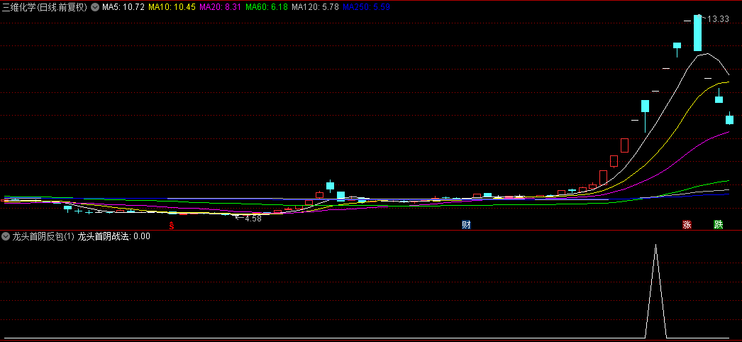 首先,首阴前面必须有涨停板,涨停板连板最好,连板越高越多人关注,人气越旺,至于是多少连板没有明确限定,在代码中我将在放开权限让大家灵活设置是至少多少连板!
