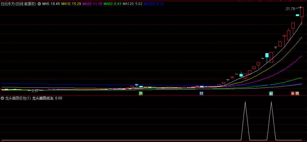 其次是首阴,首阴定义为涨停板之后的第一根阴K线,且当天成交量必须是史上天量,也就是上市以来最高成交量柱子,最猛的量,最强的分歧,但强分歧之后却能在第二天反包前面首阴K线的实体,后面就是击鼓传花游戏了,击鼓传花能走多高看市场造化!
