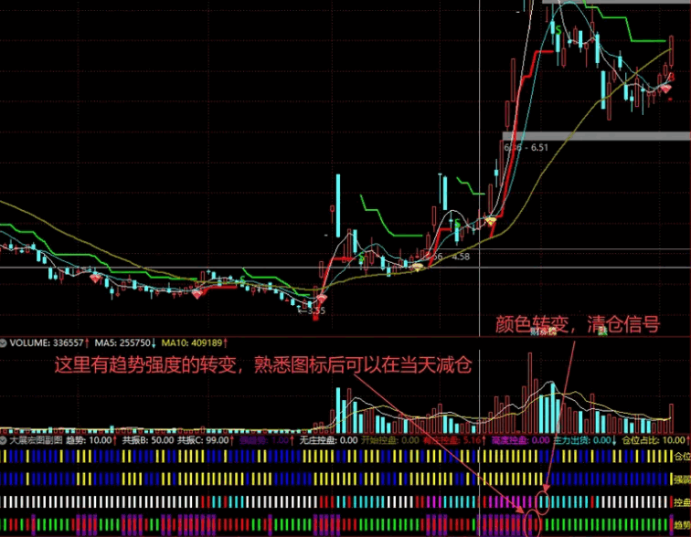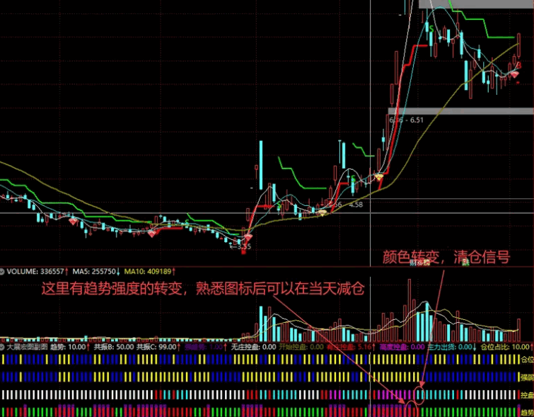 强弱那行灯颜色有两种,黄色表示强度可以,蓝色表示强度变弱,红转蓝减仓,尾盘还是蓝灯的时候,最好清仓,要留仓位的话也别多;
