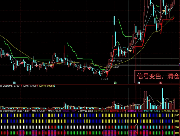 所有灯的颜色是以尾盘为准的,因为代码是用到当天的收盘价为参考,所以在盘中的时候信号颜色变化,需要警惕,但是没太快操作仓位!!!