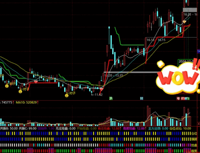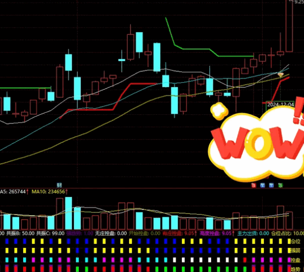 控盘那行灯颜色有四种,白色表示无庄控盘,绿色表示主力出货,红色表示有庄控盘,紫色是高度控盘;红色可以买入,紫色最佳;