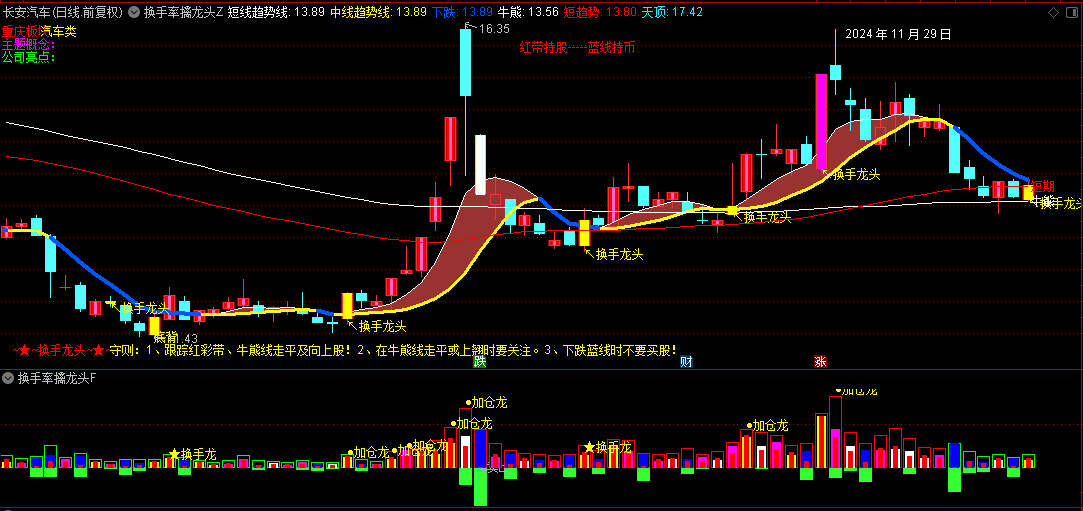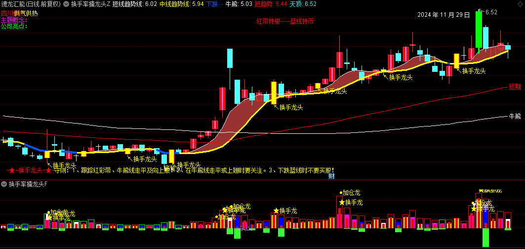 其核心在于,当主图与副图同时显示出“换手龙共振”信号时,即标志着一个高度确定的买入机会已经到来。