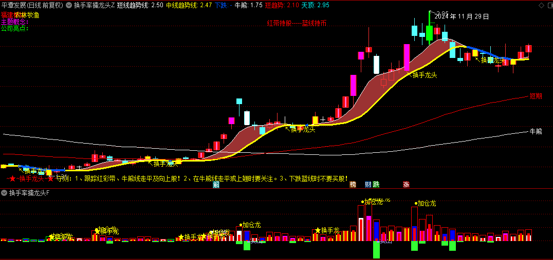 换手率擒龙头指标,一套融合了主图、副图以及选股指标的综合性技术分析工具,专为捕捉市场龙头股启动与加仓的关键节点而设计。本指标选股不含未来函数!