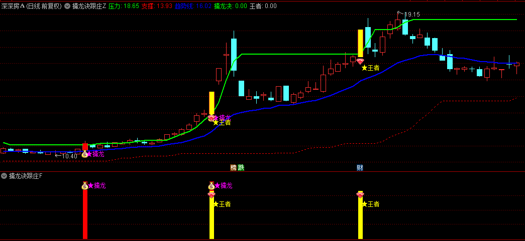 新版【擒龙诀跟庄】主图+副图+选股指标,通过股价与趋势线的偏离度,判断突破捉龙头!