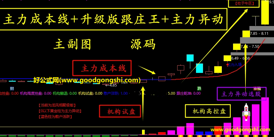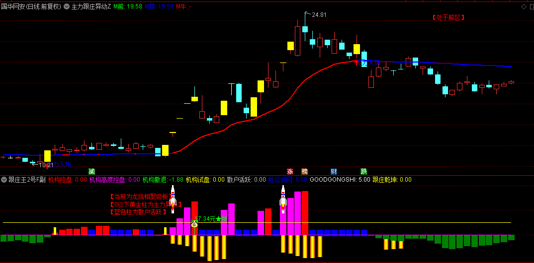 通达信【主力跟庄异动】升级版主图+【跟庄王2号F】副图选股指标,强化选股能力,定位机构实盘动向!