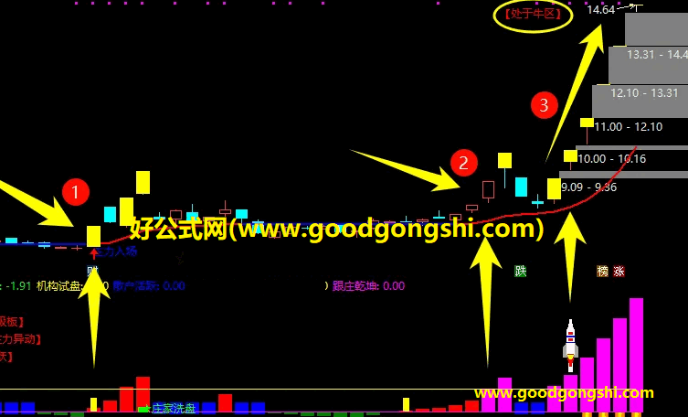 5、红柱彰显机构控盘力度,洋红则示机构深度介入;蓝柱则映射散户活跃状态,市场脉搏尽在掌握。