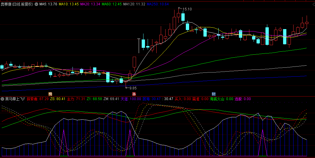 而如果三条虚线曲线到达这个超卖区后,股价却没有涨多少,往往后期会有补涨,要综合分析;