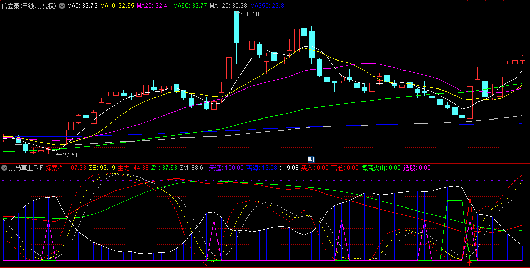 这个副图指标的信号其实是比较多的,这里做一个副图中出现红色三角位置的选股指标;
