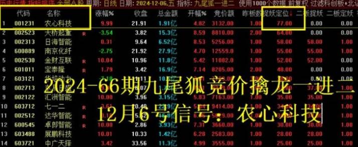 12月6号捉妖定位竞价信号:农心科技,当日涨停