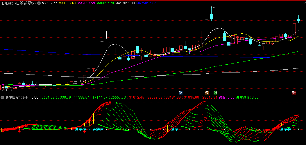 可以提示量能异动、庄家进场的位置,并且有进庄的文字提醒。