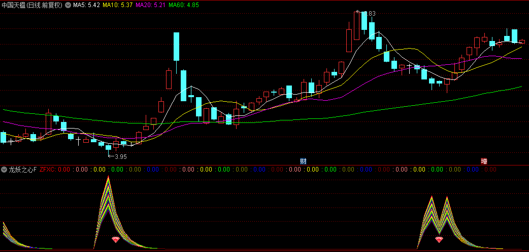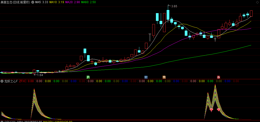 用到了同一条趋势线的间隔很小的另外多条趋势线,相当于把同一个计算方式,采用倍数缩小的方式重复显示;