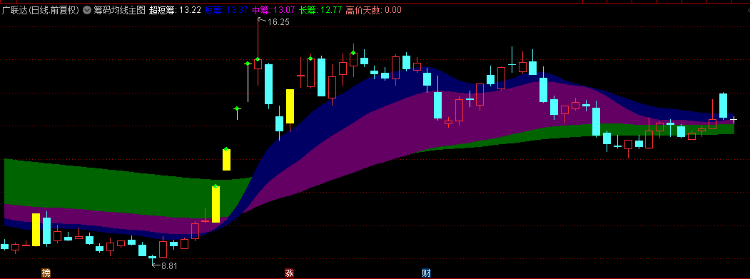 筹码长期下跌后,筹码变道翻转,中长筹码做底,短筹超短在上,说明反转,同时反转后,出现60天新高,表明解放中短筹码,有意愿做多。
