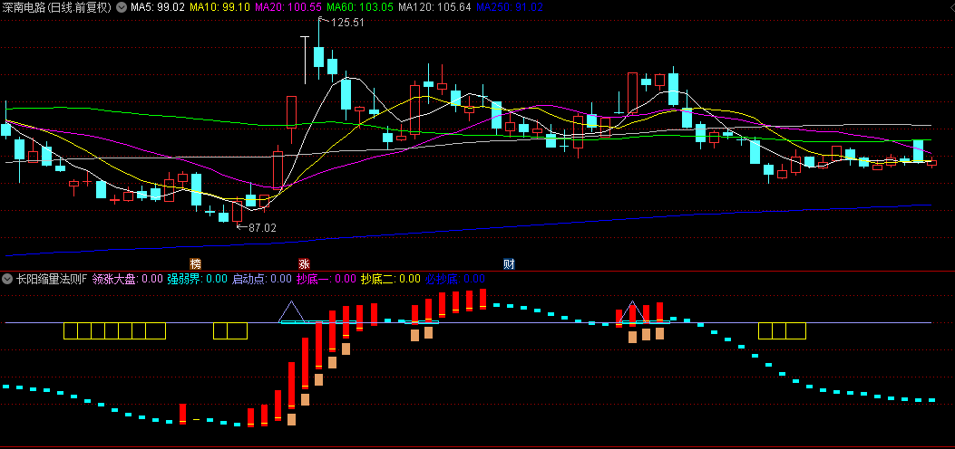 趋势判断:通过均五升、均十升和中线趋势升来判断市场的短期和中期趋势。