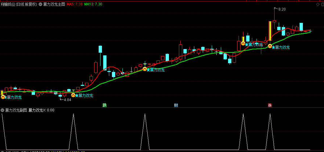 暴力双龙主图指标,右侧强势交易战法系列,无未来函数。