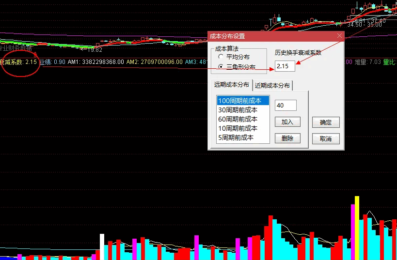 指标的衰减系数就是扣除之后得出的数值,每只股票的筹码峰衰减系数不一样,需要自行更改。