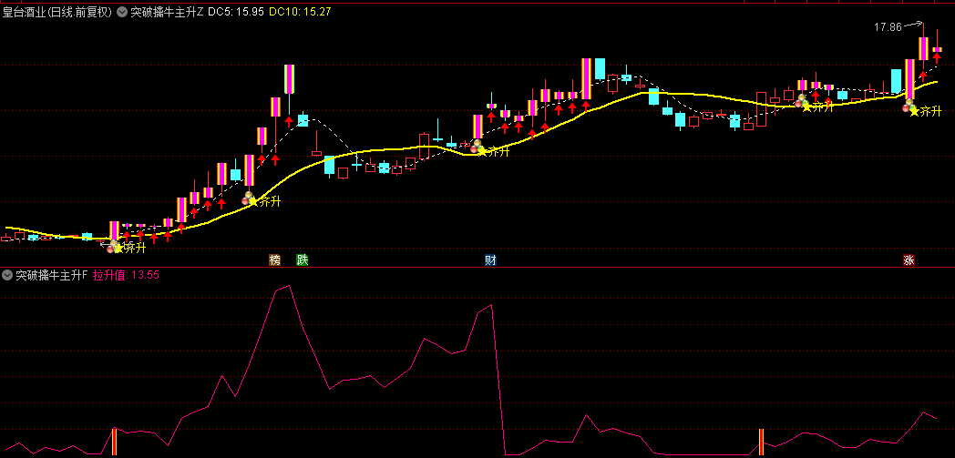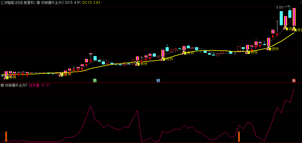【突破擒牛主升】主图+副图+选股指标,量价一致齐升,后市看涨!