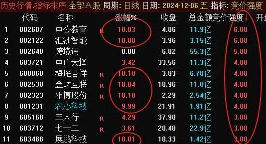 通达信【竞价强度排序】副图指标,集合竞价抓妖股,市场情绪的早期预警!