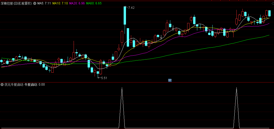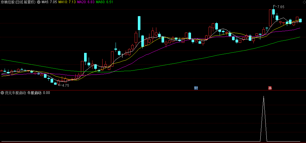 牛股启动指标是从三线合一与量过前五结合并作初步优化后产出。效果还可以,源码分享。无未来函数。