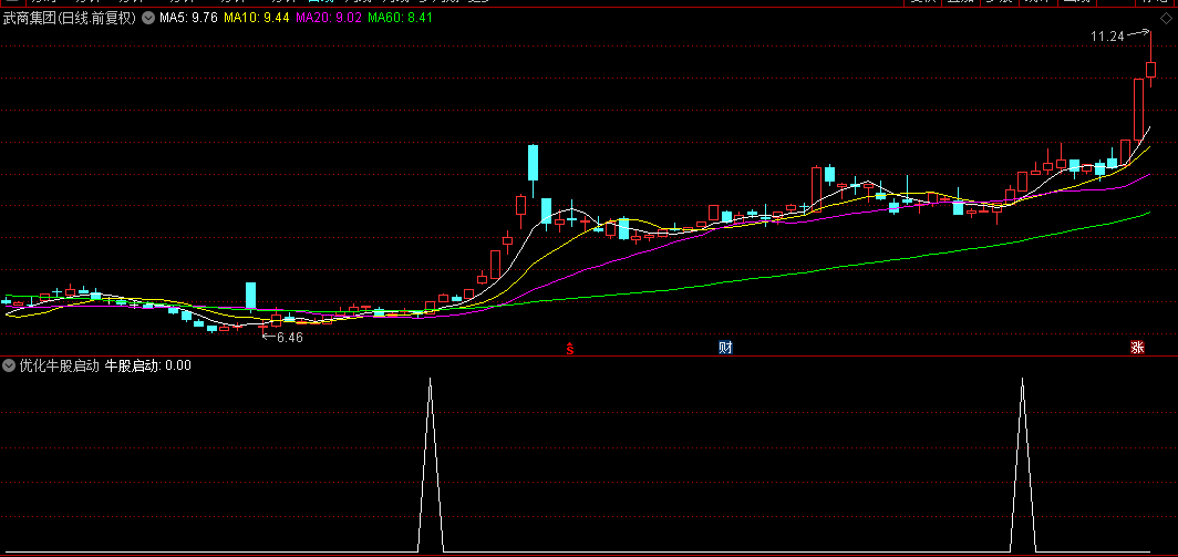 通达信【优化牛股启动】副图+选股指标,组合三线合一+量过前五,效果还可以!