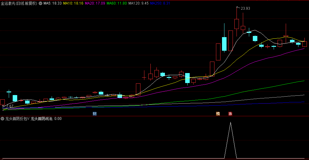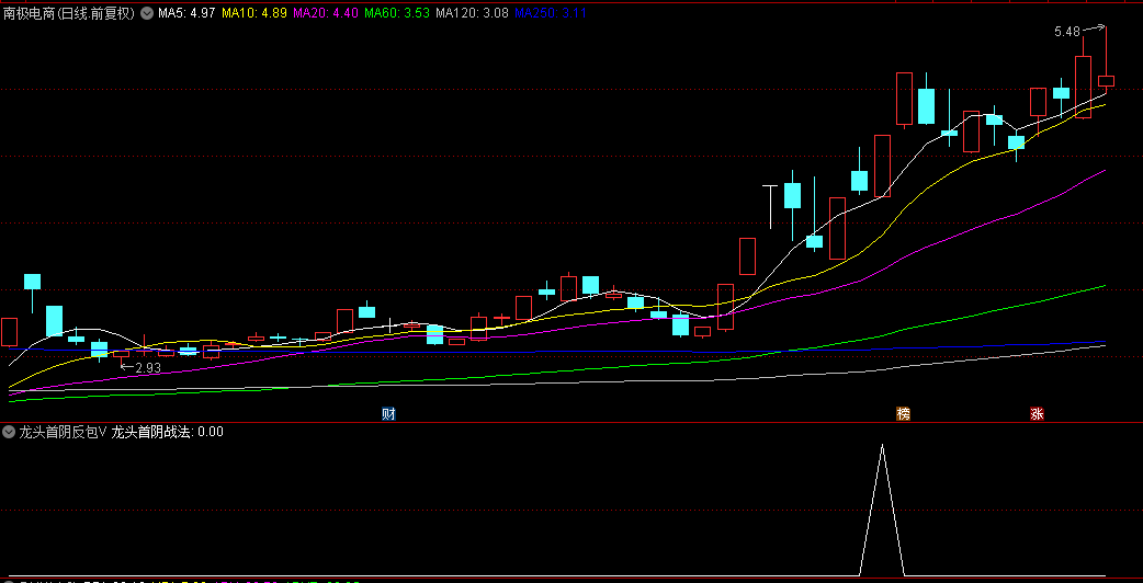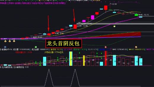 那么,如何才能选出上面模式呢?今天龙哥给大家分享智尊版的龙头首阴反包战法,相比于前面的标准版的龙头首阴反包战法,智尊版选股器不要求当天能完全反包前一天天量阴K线实体,有时因为前一天天量阴K线实体太长,即使它当天涨停板也不能完全反包,只能反包前一天阴K线实体一半以上,比如下面这种K线。