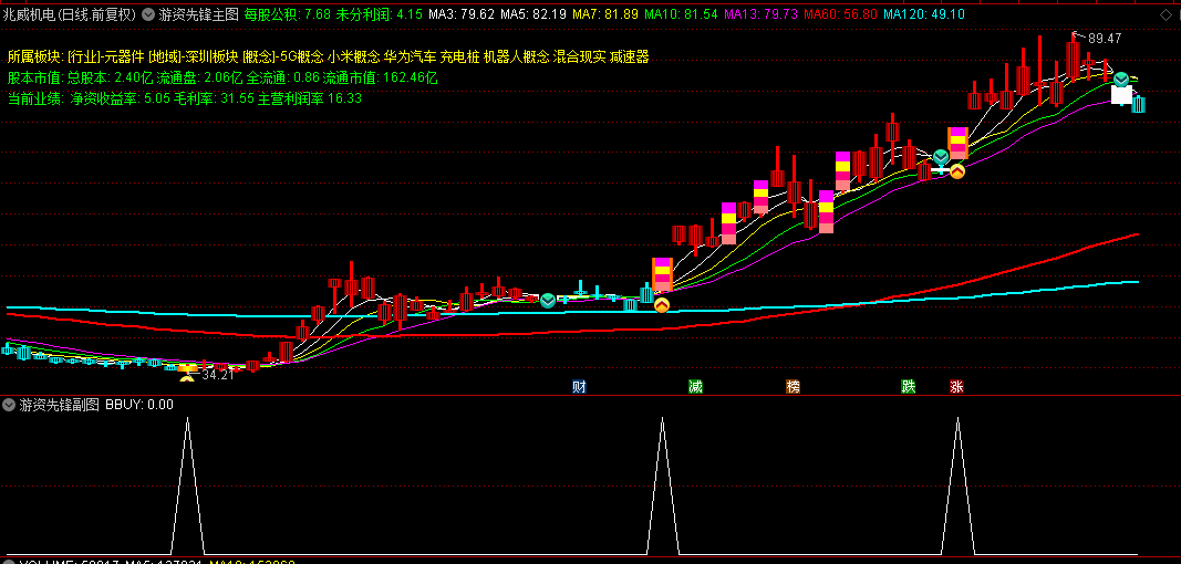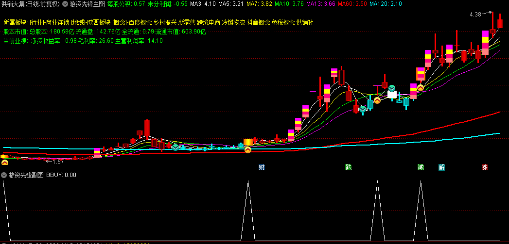 小均线:用于捕捉短期波动,线条较细,反应灵敏。