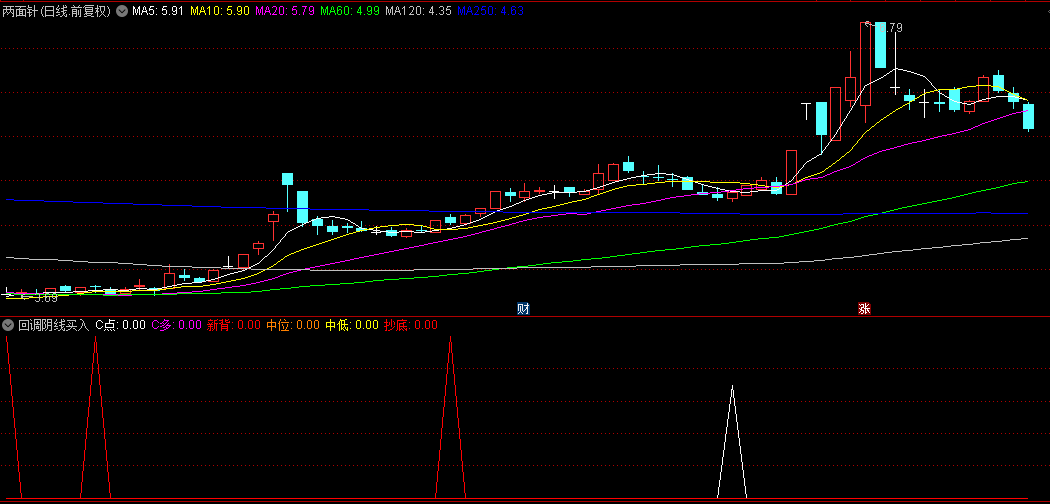 中低位信号:强弱指标RSI处于中低位,抄底成功率下降