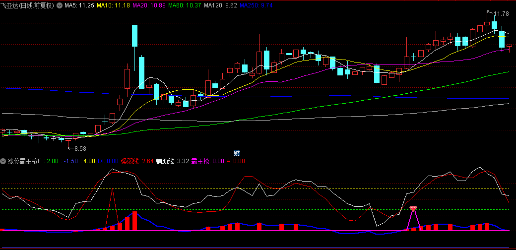 红色线有时候会失真,所以用白色线来辅助,如果红白两条线同步,说明股价正常运行,如果两条线出现背离走势,就要以白色线为准判断趋势;