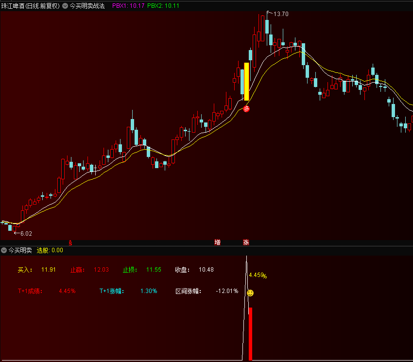 如果你了解翔博软件,你就应该知道,我有很多不为人知的赚钱指标。但在众多的T+1超短线类指标之中,今买明卖战法却始终是我的最爱。为什么呢?