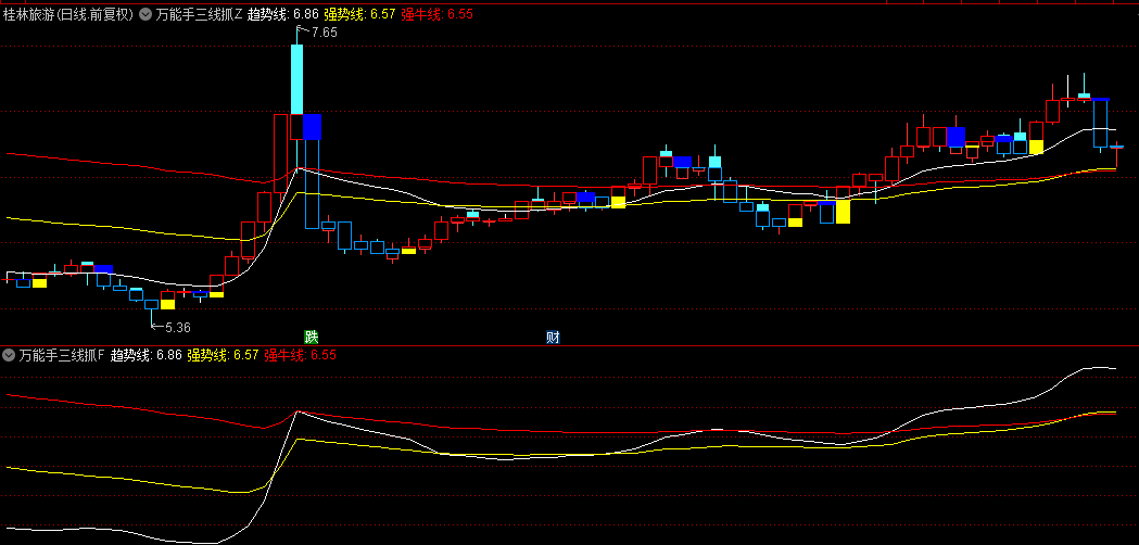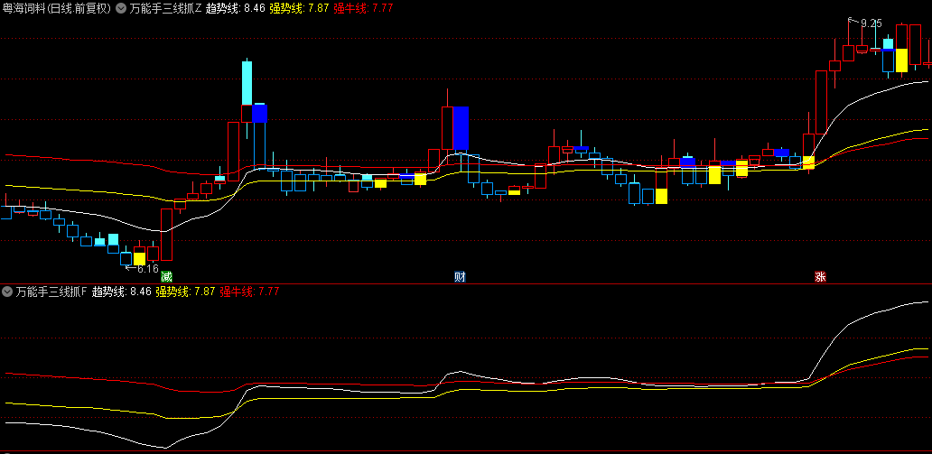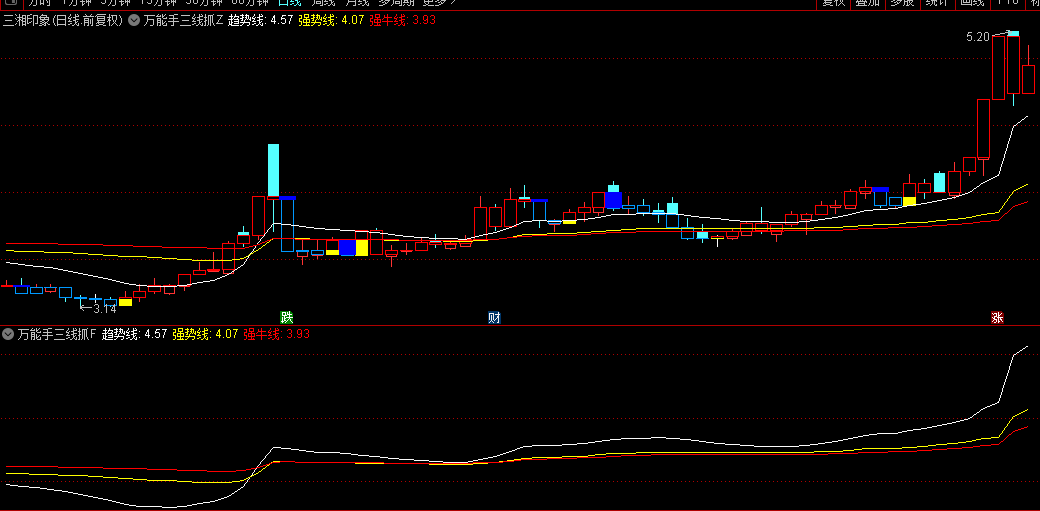 通达信【万能手三线抓牛股】主图+副图+选股指标,三线定强势,辅助抓牛股!