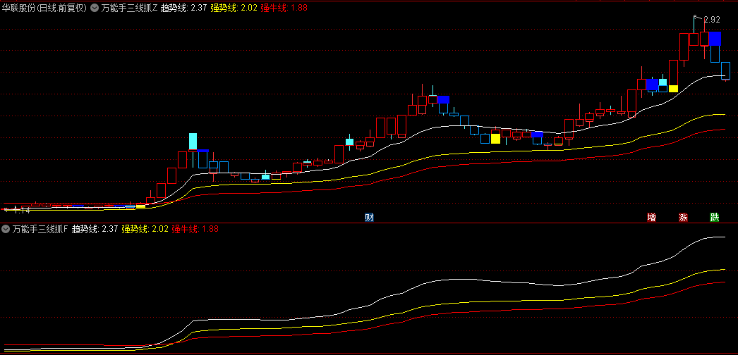 根据个人实际操作经验总结,以三条K线作为参照,判断个股走势的强弱。