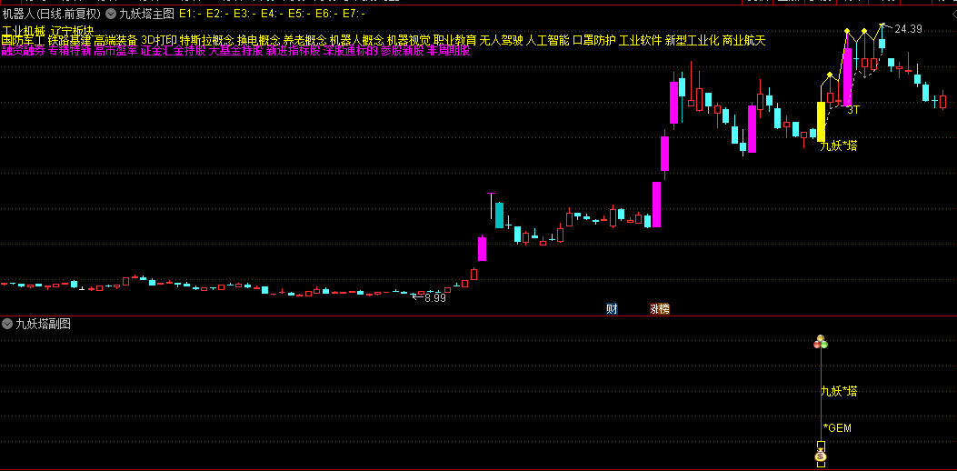 买入条件:当一只个股满足上述多个条件,并显示出“妖股”特征时,指标会发出买入信号。