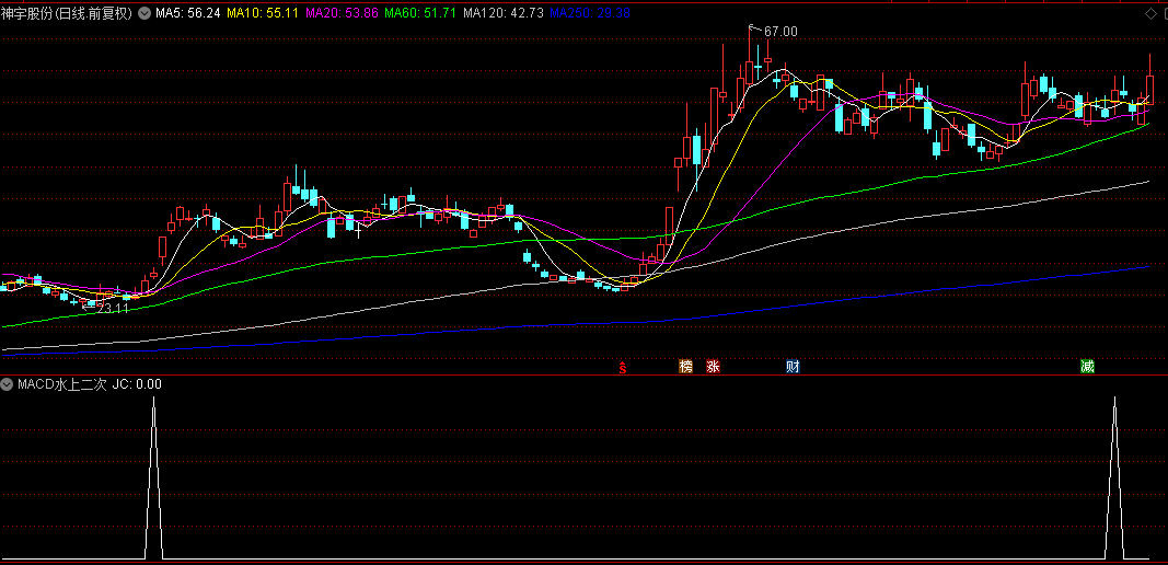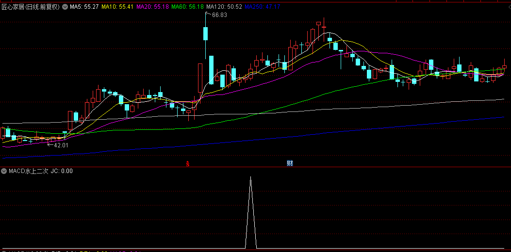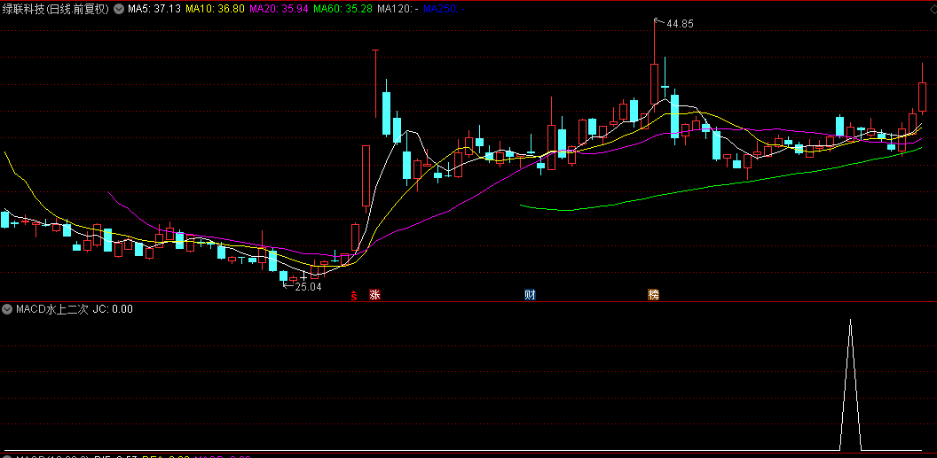 下面就我自用的MACD水上二次金叉的选股指标奉献出来,给大家使用,
