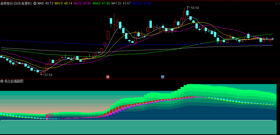 在附图上,高低起伏的线条代表着筹码的密集与分散状态。