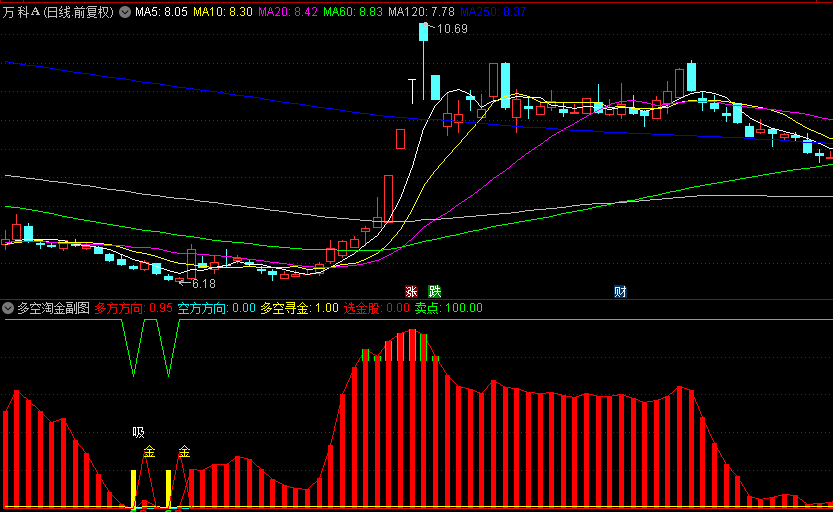多空淘金指标,集副图与选股指标于一体,核心功能在于强势下跌行情中精准提示买入点。无未来函数!