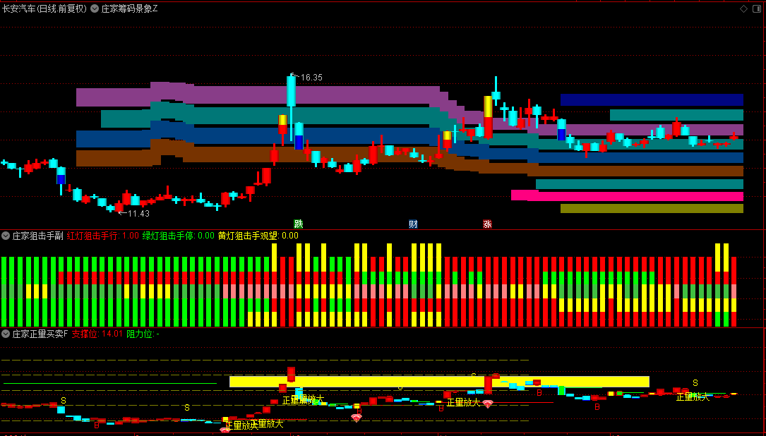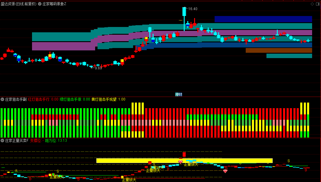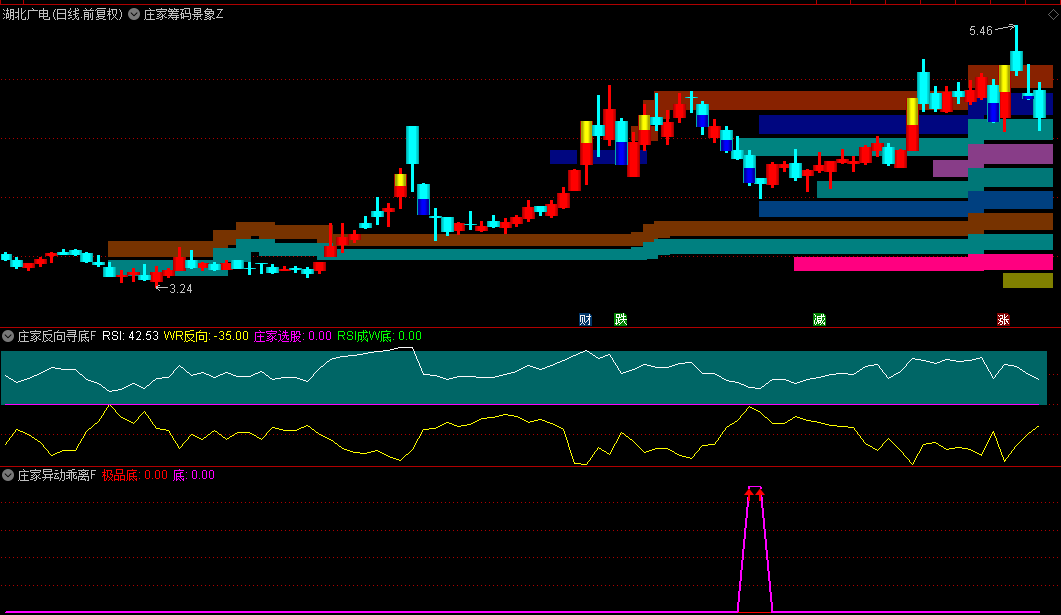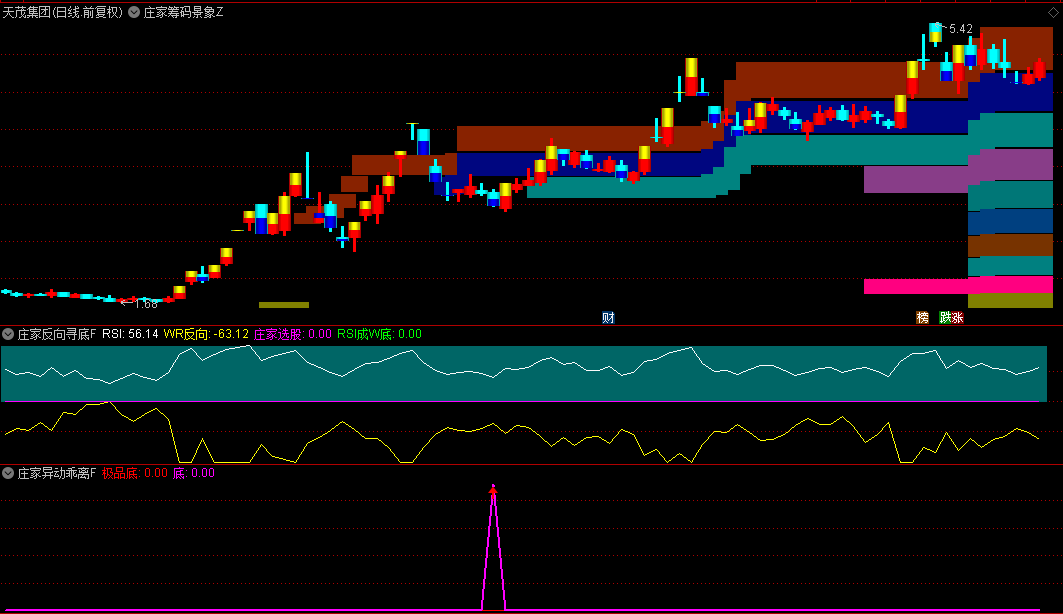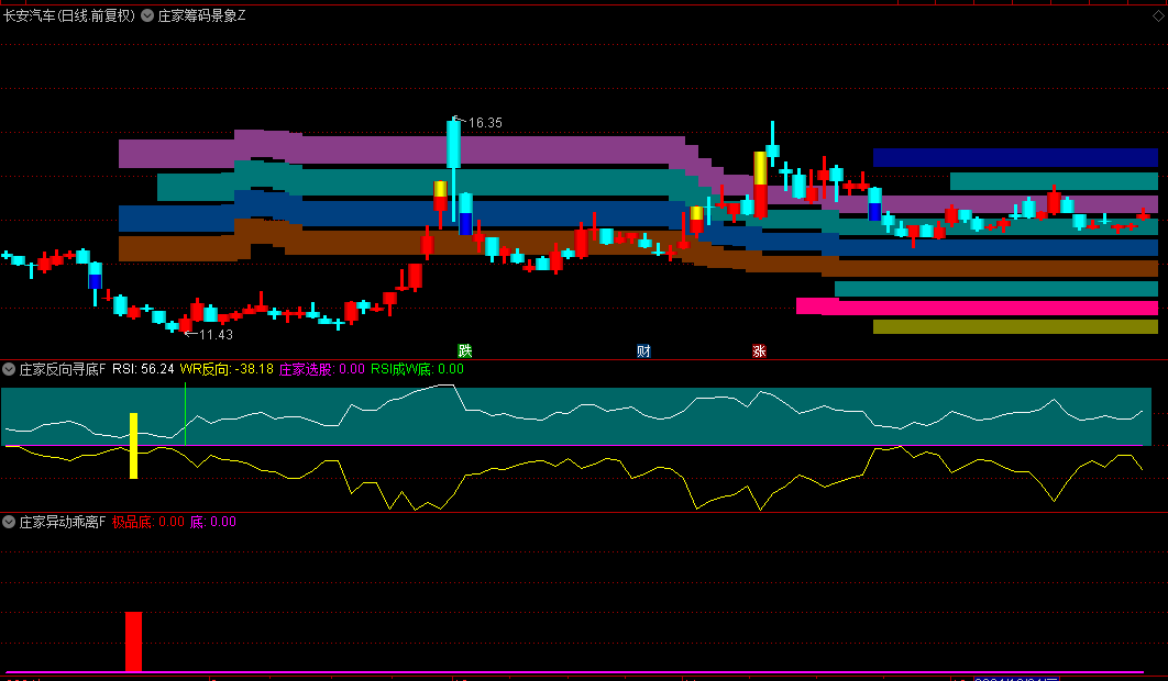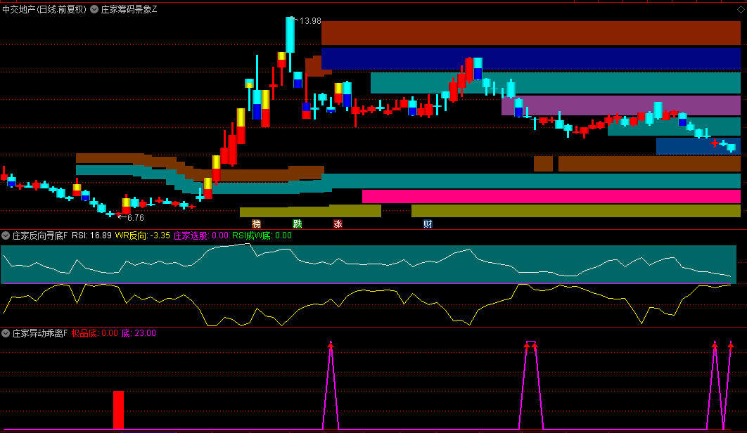 指标采用全新的寻庄思路,利用五个指标共振来确认庄底,具有较高的参考价值!!!